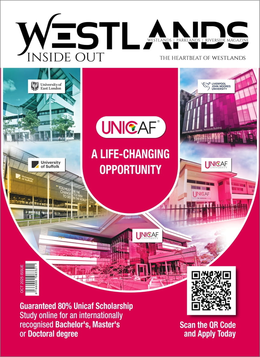 It is a sister publication to hugely successful Lavington Inside Out, Karen Inside Out and Gigiri Inside Out magazines. Westlands Inside Out is a community focused magazine for the people working and/or living in Westlands and her neighbours, keenly exploring areas of interest. The magazine’s most prominent sections include ‘City Guide’, 'New in Westlands', ‘Best Of Westlands’, 'Driven Culture', ‘Luxury’, 'Art and Beyond', ‘Business’, 'Networking', ‘Entertainment’, 'Wine and Dine' and ‘Find it’, which is a mini- directory.